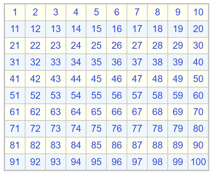 Number chart 1 to 100